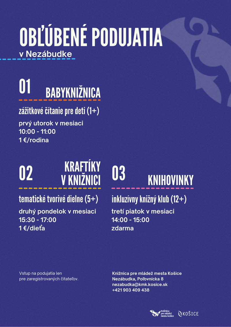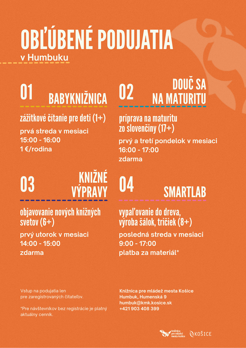 Miesto: mimoškolské pobočky LitPark, Hornádka, Humbuk, Merkúr, Nezábudka
