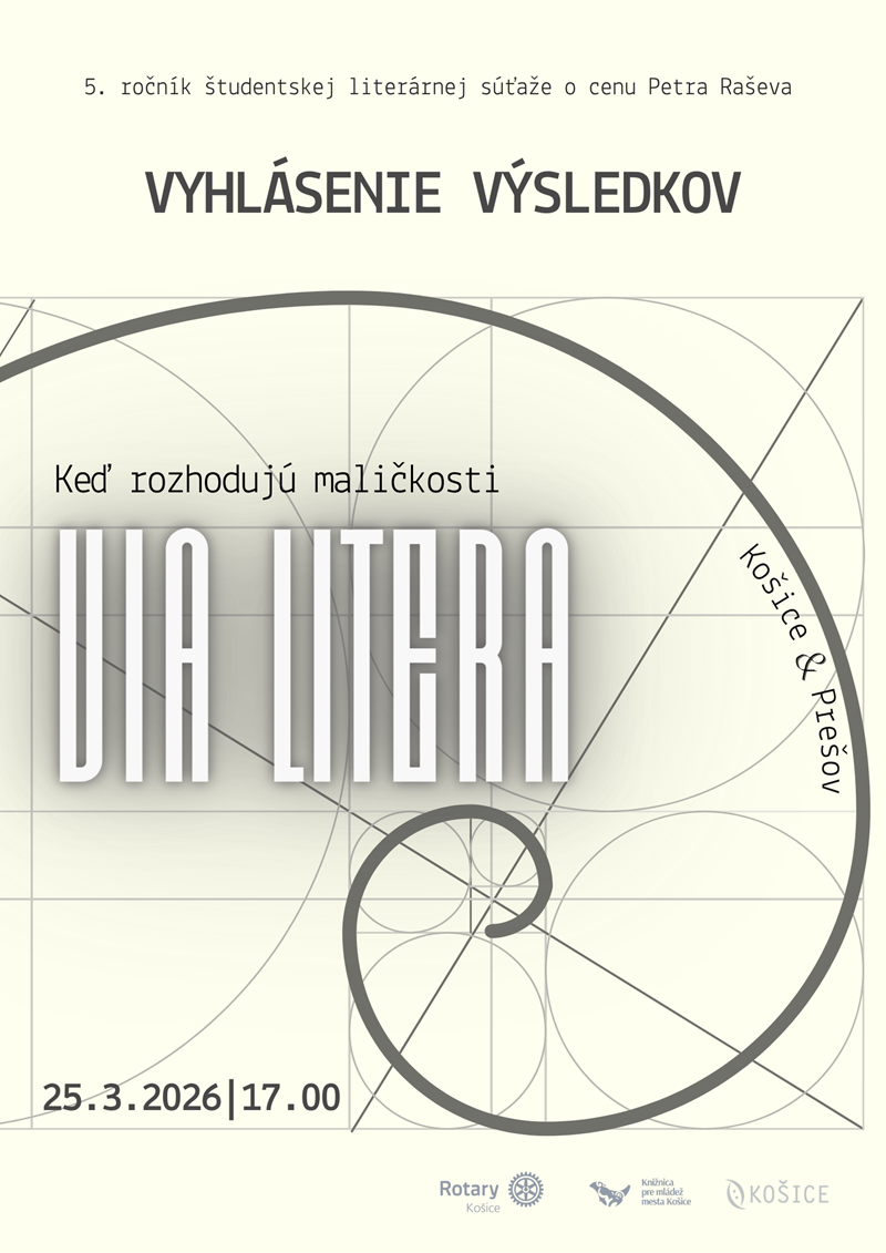 Knižnica pre mládež mesta Košice a Rotary Klub Košice slávnostne vyhlásili výsledky 5. ročníka literárnej súťaže Via Litera pre stredoškolákov z Prešova a Košíc.