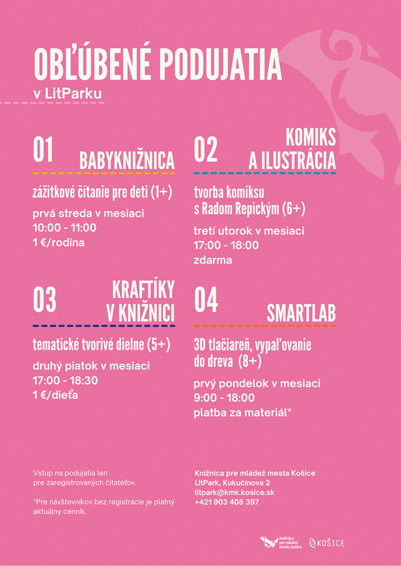 Miesto: mimoškolské pobočky LitPark, Hornádka, Humbuk, Merkúr, Nezábudka