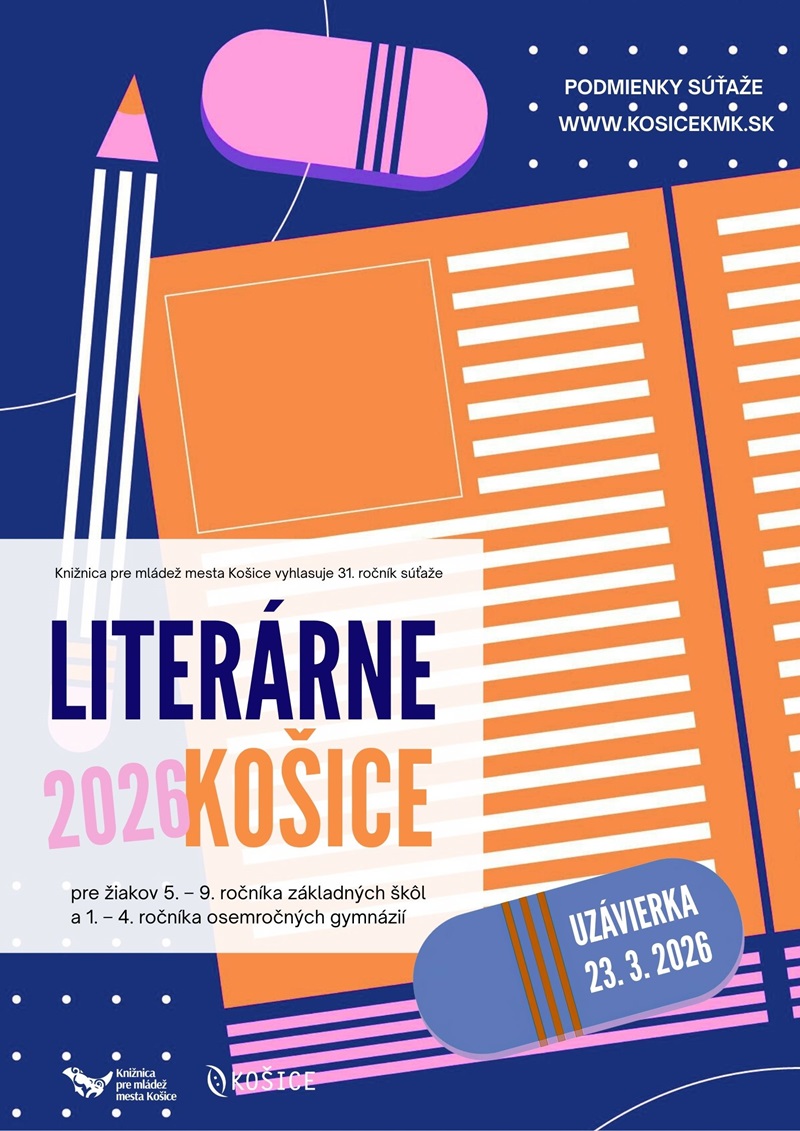 Knižnica pre mládež mesta Košice vyhlasuje 30. ročník literárnej súťaže pre žiakov 5. - 9. ročníka základných škôl a študentov 1. - 4. ročníka osemročných gymnázií.
