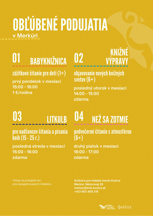 Miesto: mimoškolské pobočky LitPark, Hornádka, Humbuk, Merkúr, Nezábudka